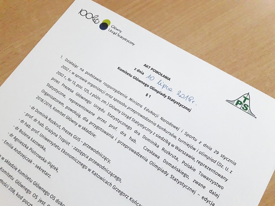 W dniu 10 lipca 2018 r. w trakcie II Kongresu Statystyki Polskiej, który odbył się w Warszawie w dniach 10-12 lipca 2018 r., został podpisany Akt Powołania Komitetu Głównego przez pana dr Dominika Rozkruta Prezesa Głównego Urzędu Statystycznbego i pana prof. dr hab. Czesława Domańskiego Prezesa Polskiego Towarzystwa Statystycznego. Akt ten inicjuje podjęcie dlaszych działań w celu uruchomienia III edycji Olimpiady Statystycznej.