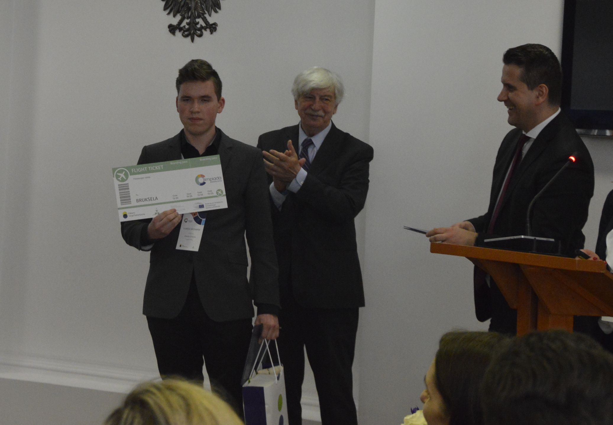 Dodatkową nagrodą dla finalisty Olimpiady z województwa dolnośląskiego, który uzyskał najwyższy wynik ufundowała Pani Poseł do Parlamentu Europejskiego Danutę Jazłowiecka jest wyjazd studyjny do Brukseli w celu zwiedzania Europarlamentu. Otrzymał ją Pan Łukasz Krzempek, który zajął 7 miejsce.